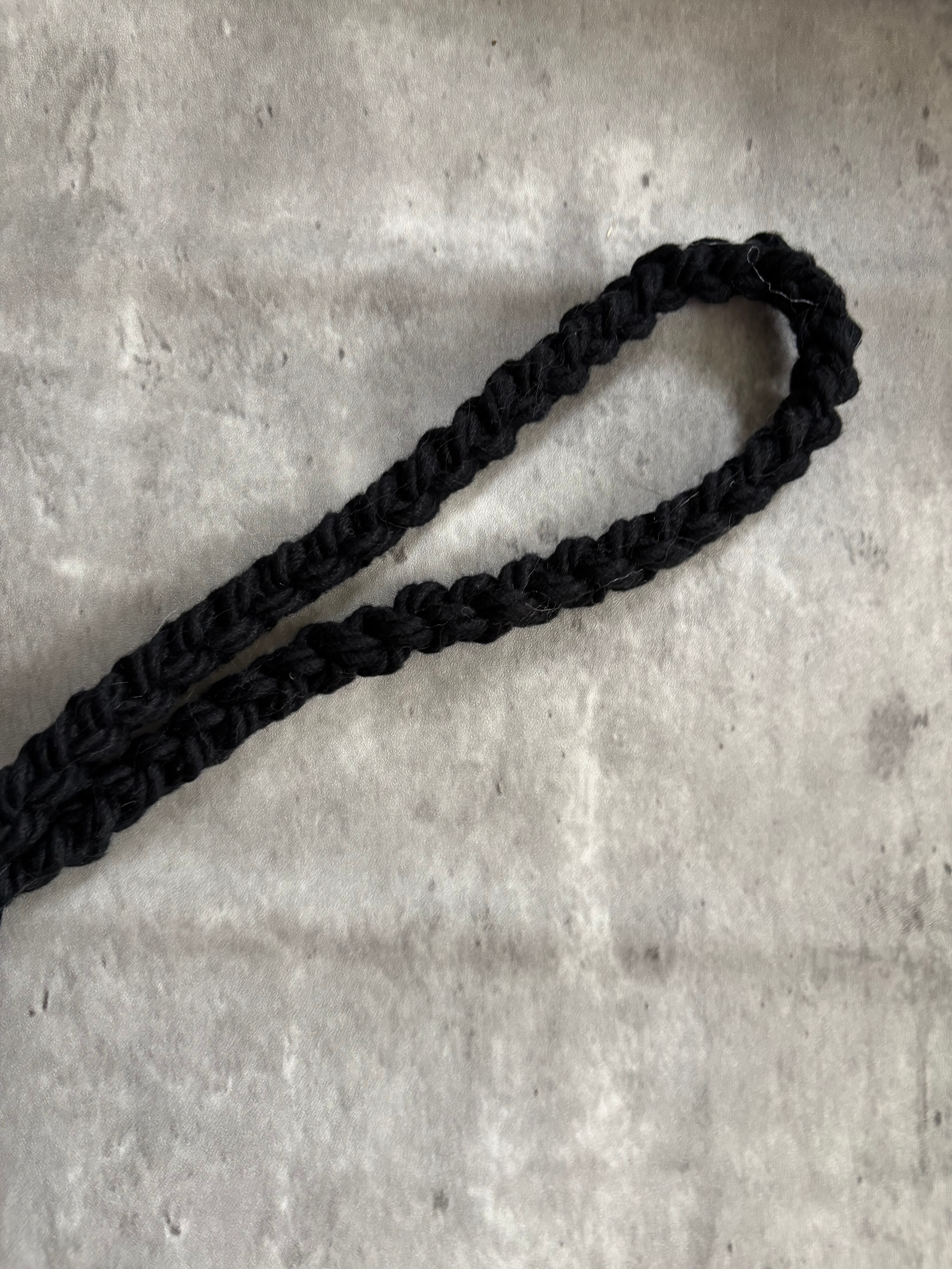 オリジナル染めの上品なブラックカラーのマクラメコットンリードで柔らかい仕上がりで手触り、質感も高級感があります。